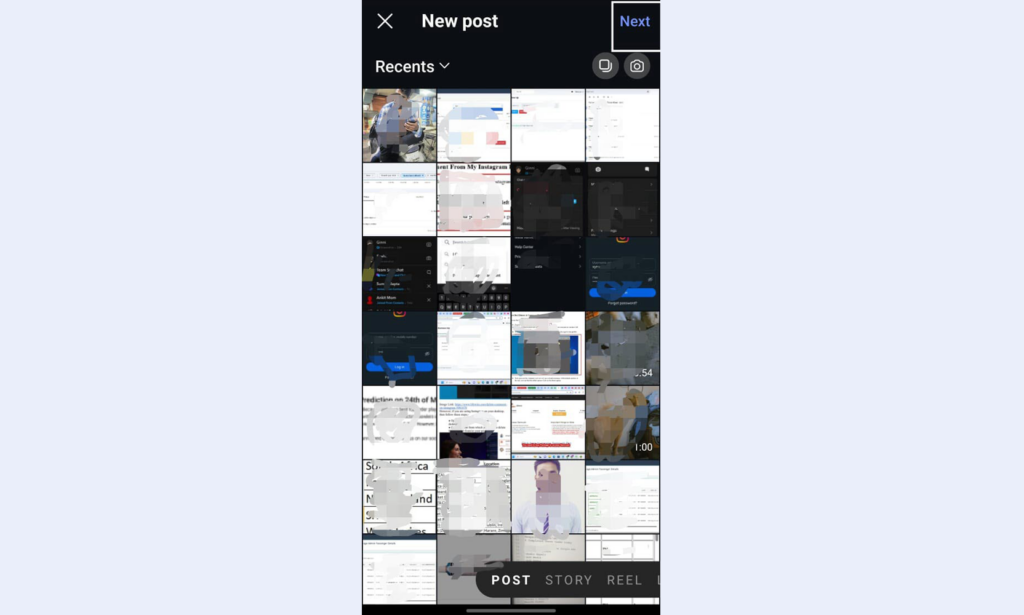 Step 4 – Tap on the photos you want to post and click on “Next” at the top right corner.