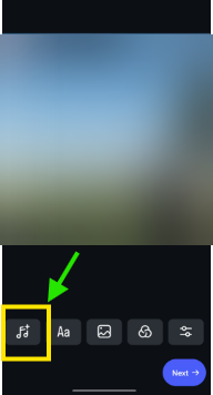 Step 5 – By clicking on “Next,” you come to the next step, where you can finally add music to your post by first clicking on the option “Music.”