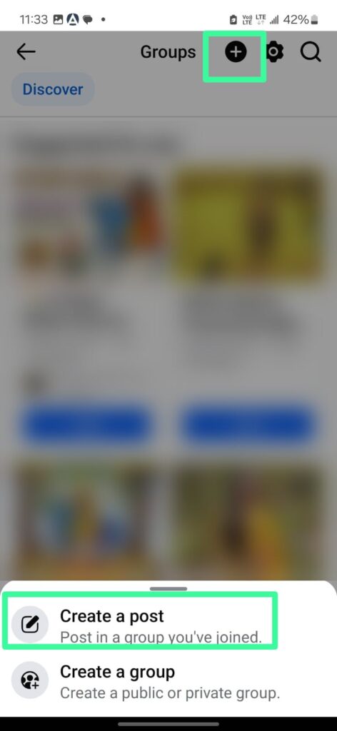 Step-4: Now click on the “+”, and then click on the “Create post” or “Write Something” section to make a post.