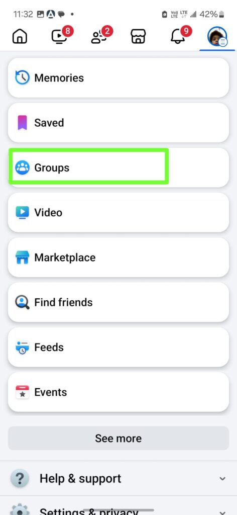 Step-3: In this step of posting anonymously on Facebook, you have to click on “Groups” by clicking on the menu button from the home of your Facebook account.