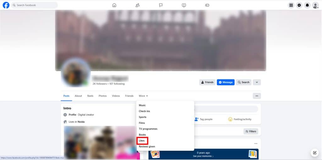 - Navigate the friend’s profile to see what they have liked on Facebook.