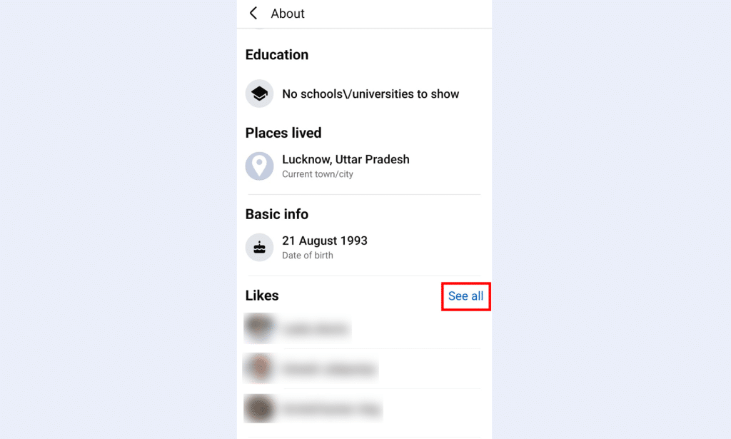 Answer. To see what someone likes on Facebook on your mobile device, follow the steps below.
